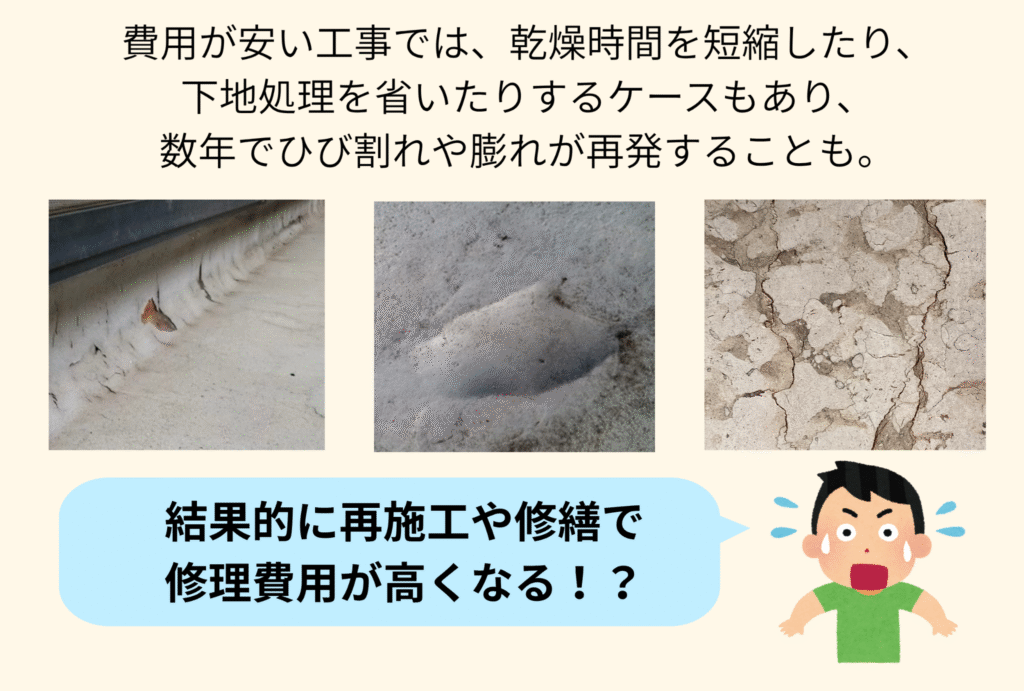 特に、最も重要なことは、短期的な安さにとらわれず、信頼できる業者に確実な施工を依頼することです。